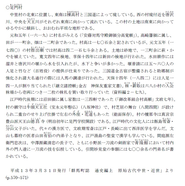 (4) 足門村  群馬町誌通史編上 原始古代中世・近世より